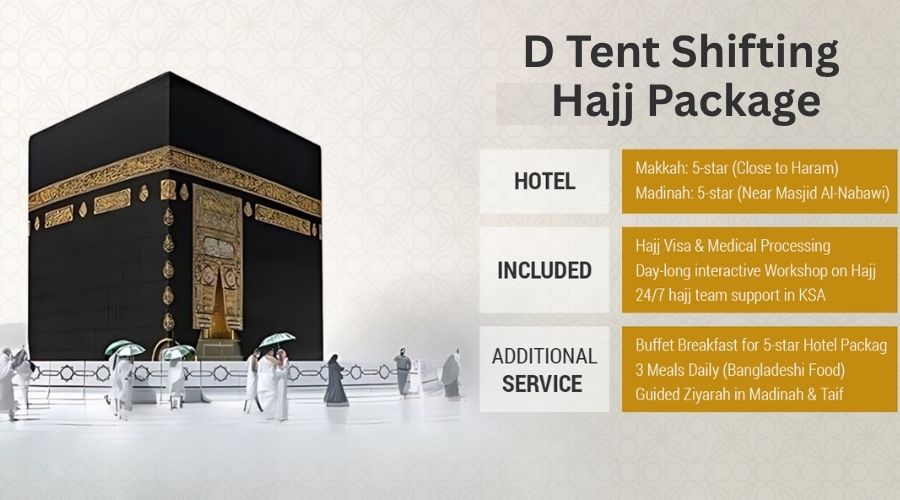 Shifting D-Tent Hajj Package by Jetway Hajj Group, a Ministry-licensed, IATA accredited, and HAAB member agency, is a budget-friendly pilgrimage option. Includes D-category tent accommodation...